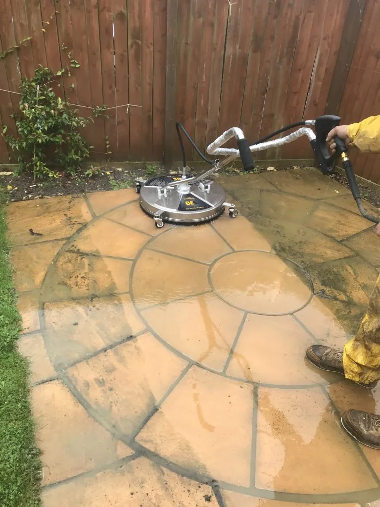 High-power exterior cleaning to remove moss, algae, and dirt from patios, driveways, paths, and outdoor surfaces.